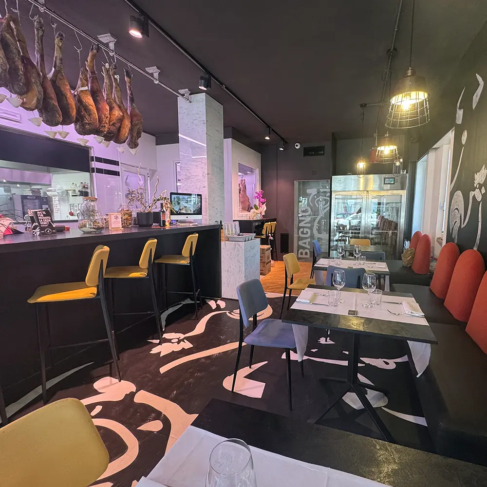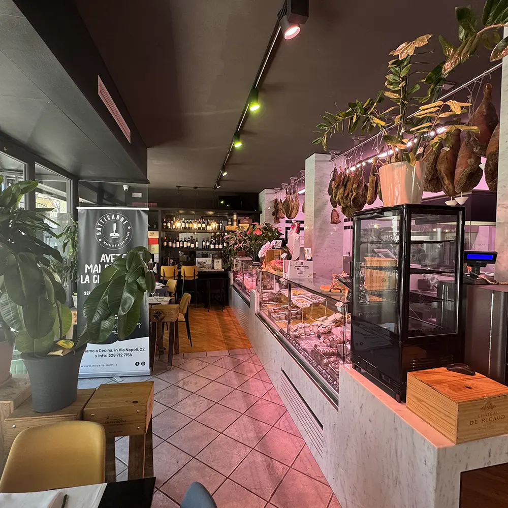 L'atmosfera del Ristorante Batticarne vi accoglierà in un ambiente curato nei minimi dettagli, dove il prestigioso marmo di Carrara caratterizza l'arredamento con eleganza senza tempo. L'arredo tipico delle vecchie macellerie toscane crea un'atmosfera autentica e suggestiva, dove ogni elemento è pensato per richiamare la tradizione gastronomica locale in un ambiente intimo e raffinato che esalta l'esperienza culinaria.